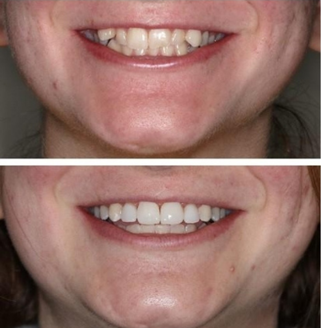 Patient was engaged to be married but wanted a nicer smile. Routine cleanings were provided as well as orthodontics, whitening, and porcelain ceramic veneers. She got married in the course of treatment but waited to take wedding photos until treatment was completed. Needless to say she is thrilled with her new smile!